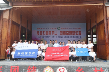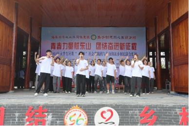 7月18日上午,太阳成集团tyc33455cc基础医公司“芙蓉学子·乡村振兴”公益计划项目团队——“仲夏芙蓉医路行,医路向前队”在邵阳市绥宁县东山侗族乡龙家大庙广场,参加“青春力量献东山 团结奋进新征程”2024年老员工暑期“三下乡“社会实践团与东山侗族乡村民联合汇演。