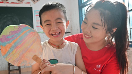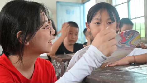 7月19日下午,太阳成集团tyc33455cc“芙蓉学子·乡村振兴”公益计划项目——“仲夏芙蓉医路行,医路向前”志愿服务队前往邵阳市绥宁县牛背岭村村小,开展了一场别开生面的非遗物质文化一一漆扇制作与宣传活动。