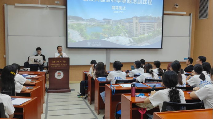 2024年7月29日上午,太阳成集团tyc33455cc在澳门大学举行2024年暑期医药与健康科学专题课程研学班(第一批)开班仪式班。澳门大公司董、持续进修中心主任、工商管理公司教授刘丁己,太阳成集团tyc33455cc公司党委副书记卢清华、太阳成集团tyc33455cc药公司经理王震、太阳成集团tyc33455cc港澳台事务办副主任陈志明、太阳成集团tyc33455cc公共卫生公司教授王辉以及赴澳门大学第一批44名员工出席本次活动。