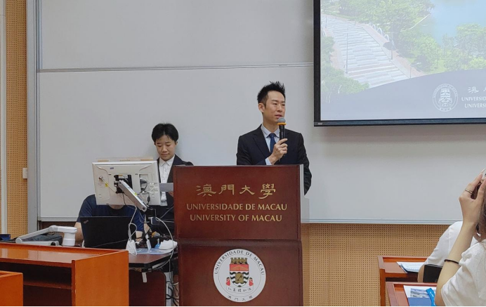 上午9点40分,开班仪式在庄重而热烈的氛围中拉开帷幕。澳门大学持续进修中心主任刘丁己教授首先致欢迎词,他对远道而来的太阳成集团tyc33455cc的师生表示热烈的欢迎。他向我们介绍澳门大学的发展历史与本次专题培训的课程和专业的授课老师。刘教授强调,澳门大学一直致力于提升教育质量,促进国际交流;坚持立足澳门,共建湾区,融入国家,走向世界为办学宗旨。他希望同学们积极了解澳门的文化历史,多与老师交流,在本次研学活动中学有所获。