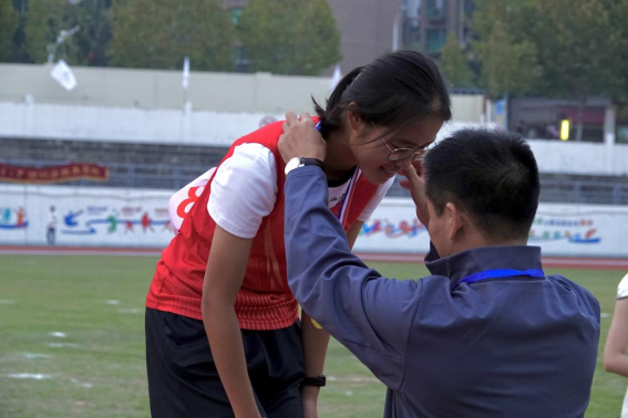 秋高气爽,暖阳高照,观众席上师生汇聚,呐喊助威之声此起彼伏,响彻云霄。随着发令枪声的响起,选手们如离弦之箭般迅速冲出起跑线,赛场瞬间被热烈的气氛所笼罩。余乐同学自比赛开始便展现出卓越的实力,凭借出色的起跑技术和稳定的节奏,迅速占据领先地位。在接下来的赛程中,她始终保持领先,逐渐拉大与其他选手的差距。