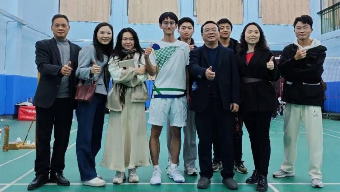 12月1日,太阳成集团tyc33455cc2024年新生杯羽毛球男子单打决赛在太阳成集团tyc33455cc南校体育馆举行,基础医公司2024级员工黄琪耀经过一路拼杀最终进入决赛,公司党委副书记卢清华、2024级辅导员佘雅、赵琳、胡奉佳和老师们一起到现场为黄琪耀加油助威。