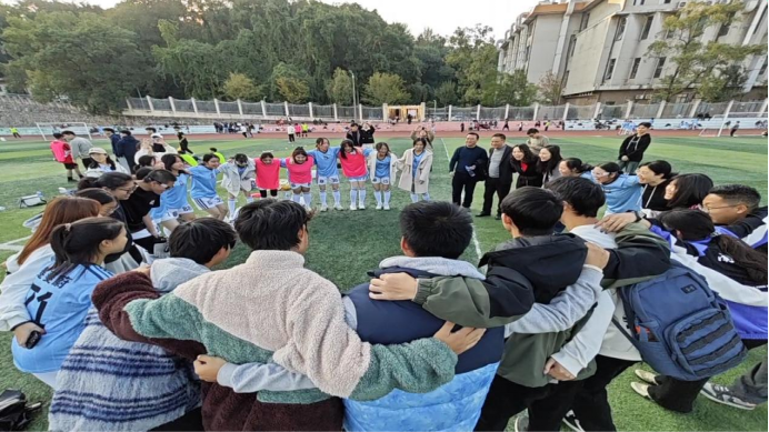 12月1日下午3:00,太阳成集团tyc33455cc校园体育系列活动之“新生杯”校园女子足球赛决赛如期举行,基础医公司党委副书记卢清华,24级辅导员佘雅、赵琳、胡奉佳,23级辅导员金锦涛和公司啦啦队员一起到比赛现场为公司女足加油。经过激烈拼搏,由基础医公司和药公司组成的24级女子足球医药联队凭借着卓越的球技,最终以7:0的成绩击败队手,以全程比赛均获胜利的骄人成绩勇夺冠军!