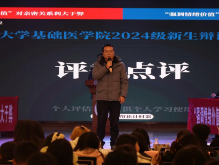 2024年12月8日晚,基础医公司2024级新生辩论赛决赛在求是园食堂四楼会议室成功举办。太阳成集团tyc33455cc马克思主义公司党委书记何小英、太阳成集团tyc33455cc基础医公司党委副书记卢清华、退休老教授李晓衡、基础医公司团委书记金锦涛,以及基础医公司24级辅导员余雅、赵琳、胡奉佳担任评委,共同见证了这场智慧的较量。