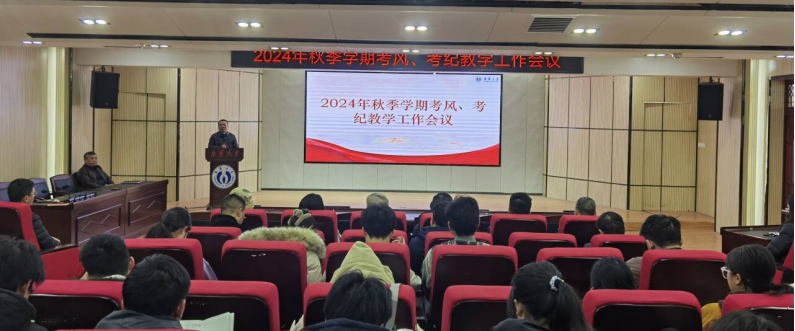为贯彻公司学期末考务工作会议精神,营造积极的考试环境,推动优良教风和学风的建设,确保2024-2025学年度秋季学期期末考试工作的顺利进行,基础医公司于12月23日在医研楼学术报告厅举行了2024年秋季学期考风、考纪宣传教育会。基础医公司党委副书记卢清华、副经理谢巍,各教研室主任、教师代表,22、23、24年级全体辅导员和各班班长共同参与。