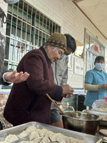 而在这场充满爱意的活动中,包饺子区域的一幕尤为感人。张学勤同学成为了众人瞩目的焦点,他虚心地向一位奶奶学习包饺子的技巧,仔细观察着奶奶的每一个动作,手法从生疏到逐渐熟练。在这个过程中,他边包边与奶奶亲切交谈,分享着生活中的趣事与感悟。他的话语如同春日暖阳,温暖而真诚,奶奶的脸上绽放出久违的笑容,那笑容里充满了幸福与满足。事后,张学勤同学感慨地说:“与养老院的奶奶一起包饺子,让我感受到了家的温暖,仿佛又回到了儿时与家中长辈相处的时光,陪伴是最长情的告白。”