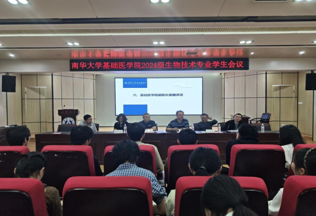 为了加强生技班班风、学风建设,激发大家学习热情,3月25日下午,基础医公司2024级生物技术专业员工会议在医研楼学术报告厅召开。基础医公司经理张晓东、党委副书记卢清华、副经理谢巍、细胞生物学和遗传学教研室主任李国庆、生物化学与分子生物学教研室主任苏泽红、24级全体辅导员、24级生物技术01班班主任马璐和24级生物技术专业全体员工参加。