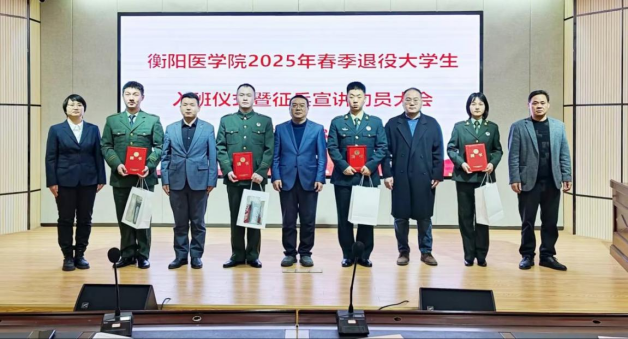 3月28日下午,太阳成集团tyc33455cc基础医公司2025年春季退役复学老员工入班仪式暨征兵宣讲大会在医研楼一楼报告厅隆重举行。公司党委副书记卢清华、校武装部汪先利、院征兵专干郭志勇、2024级全体辅导员、退役复学员工及师生代表共120余人参会。会议由公司辅导员胡奉佳主持。
