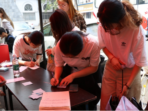 伴随着活动的正式开始,员工们陆续来到献血点,在志愿者的引导下,他们有序地填写献血登记表,进行必要的健康检查。医护人员细心安抚着每一位献血者,同时,趣味盎然的知识问答小活动正吸引在场员工们踊跃参与。在志愿者的引导下,在场的员工们积极回答问题,学习献血知识,很多同学们都领取到了小礼品,露出开心的笑容。在展台的一旁,有一处令人动容的风景——密密麻麻用便签构成的展板,便签是同学们献血的感受或是对无私献血同学的赞美。