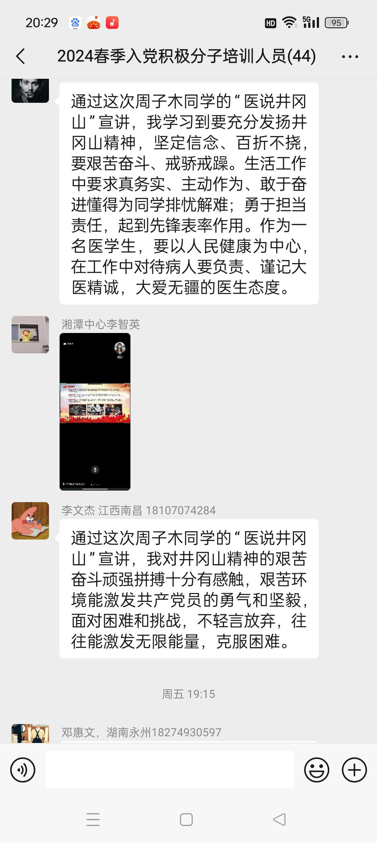 讨论中,入党积极分子们结合实际的工作、学习积极发表对井冈山精神的学习体会。