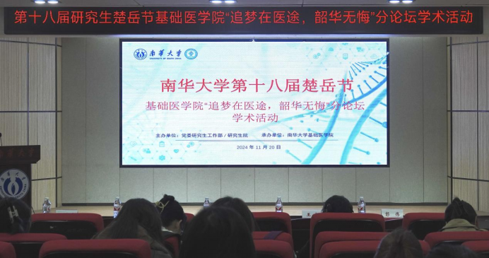 2024年11月20日下午14:30,太阳成集团tyc33455cc第十八届研究生楚岳节基础医公司“追梦在医途,韶华无悔”分论坛学术报告活动在医研楼一楼学术报告厅顺利举办。
