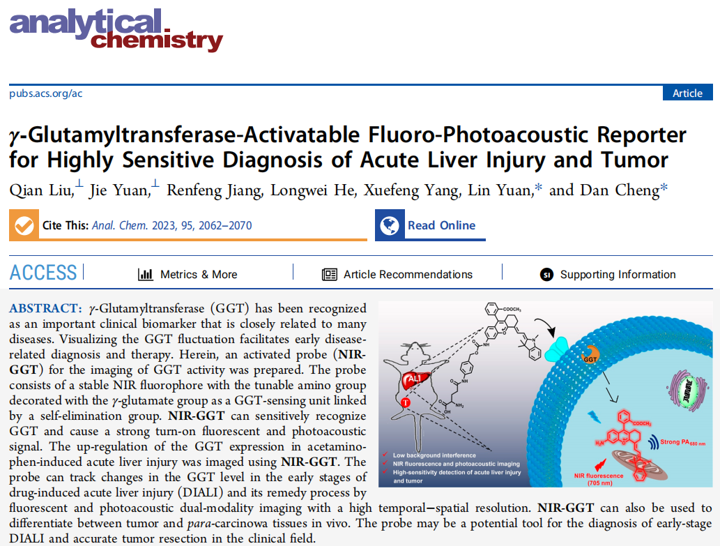 工作三:γ‑Glutamyltransferase-Activatable Fluoro-Photoacoustic Reporter for Highly Sensitive Diagnosis of Acute Liver Injury and Tumor
