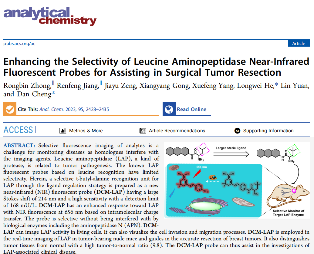 工作二:Enhancing the Selectivity of Leucine Aminopeptidase Near-Infrared Fluorescent Probes for Assisting in Surgical Tumor Resection
