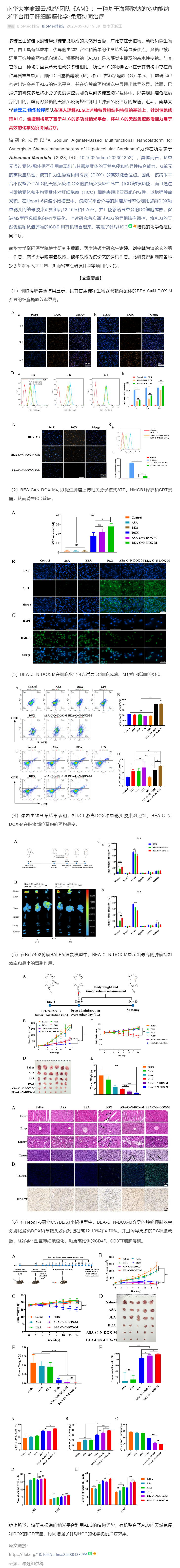 多糖是由醛糖或酮糖通过糖苷键形成的天然聚合物,广泛存在于植物、动物和微生物中。由于具有低成本、优异的生物相容性和简单的化学结构等显著优点,多糖已被广泛用于抗肿瘤药物靶向递送。海藻酸钠(ALG)是从藻类中提取的亲水性多糖。与其它仅由一种均质重复单元组成的多糖相比,线性ALG的独特之处在于其结构中存在两种异质重复单元,即β-D-甘露糖醛酸(M)和α-L-古洛糖醛酸(G)单元。目前研究已构建出许多基于ALG的纳米平台,并在抗肿瘤药物递送中展现出优异效果。然而,已报道的研究多是将小分子免疫调控试剂负载到多糖基纳米载体中,以实现肿瘤免疫治疗的目的,鲜有将多糖的天然免疫调控性能用于肿瘤免疫治疗的报道。近期,太阳成集团tyc33455cc喻翠云/魏华教授团队在深入理解ALG上述独特异相结构特征的基础上,针对性地修饰ALG,便捷制构筑了基于ALG的多功能纳米平台,将ALG的天然免疫激活能力用于高效的化学免疫协同治疗。