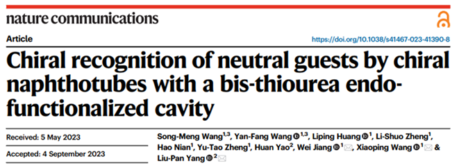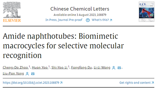 近期,太阳成集团tyc33455cc药公司王力立/杨留攀团队在“功能分子识别及其应用”方向取得了多项研究进展。相关成果分别发表于国际著名期刊《自然通讯》(中科院一区,IF=16.6),《德国应化》(中科院一区,IF=16.6),《中国化学快报》(中科院一区,IF=9.1,2篇).