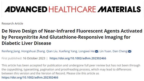 糖尿病及其并发症,如糖尿病肝病,已成为困扰人们健康的重大问题。对其病理过程中氧化还原状态的检测可以有效地帮助我们对疾病有更深入的了解。一对氧化还原物质过氧亚硝酸根离子(ONOO-)和谷胱甘肽(GSH)被认为与其发生发展密切相关。因此,ONOO-和GSH在糖尿病肝病中的直接可视化对于在分子水平上评估疾病至关重要。在此,我们基于近红外荧光团的羟基和氨基,通过保护与脱保护策略,制备了两种可激活的探针NTCF-ONOO-和NTCF-GSH,用于选择性检测ONOO-和GSH。观察了外源性和内源性ONOO-和GSH在活细胞和体内的动态荧光成像。重要的是,本研究可视化了糖尿病肝病细胞模型中的ONOO-和GSH水平,并探讨了该过程中与NAD+/NADH相关的可能的氧化还原失衡机制。此外,这两个探针可以灵敏地识别由链脲佐菌素和链脲佐菌素/对乙酰氨基酚诱导的糖尿病肝损伤引起的氧化应激过程中ONOO-和GSH含量的动态变化。此外,这些探针还可有效监测糖尿病患者的临床血清样品。这项工作将极大地促进与氧化应激事件相关的临床糖尿病肝脏疾病早期检测的发展。这一成果以“De Novo Design of Near-Infrared Fluorescent Agents Activated by Peroxynitrite and Glutathione-Responsive Imaging for Diabetic Liver Disease”为题于10月16日在线发表在Advanced Healthcare Materials。太阳成集团tyc33455cc药公司硕士研究生江仁峰和附属南华医院青年教师张红帅为共同第一作者,太阳成集团tyc33455cc药公司何隆薇教授和附属南华医院程丹教授为本研究论文的共同通讯作者。太阳成集团tyc33455cc药公司和附属南华医院为通讯单位。文章链接:https://doi.org/10.1002/adhm.202302466。