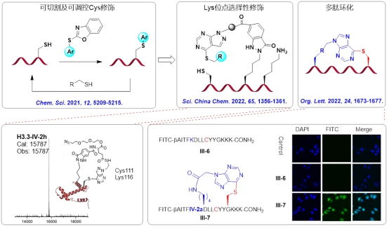 多肽及蛋白质化学选择性修饰可简便有效的赋予其特定的功能,在探究蛋白质结构与功能、研究蛋白-蛋白相互作用、监测细胞内病理及生理学进程、抗体-药物偶联物制备等方面发挥着重要作用。因此,开发高效及高选择性的修饰方法具有重要意义。太阳成集团tyc33455cc药公司王震教授团队李坚博士研究聚焦于多肽及蛋白质化学修饰与应用,目前已取得系列研究进展(Chem. Sci.2021,12, 5209-5215.,Sci. China Chem.2022,65, 1356-1361.,Org. Lett.2022,24, 1673-1677.)。