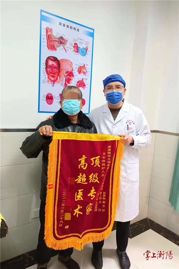 4月3日这天,70多岁的刘爷爷来到耳鼻喉科门诊办公室,把写着“顶级专家 高超医术”的锦旗送到邹上初手中,邹上初知道刘爷爷是位孤寡老人,家里经济困难,便关心询问:“我们治疗好你的病是应该的,怎么还破费做锦旗送过来呢?”
