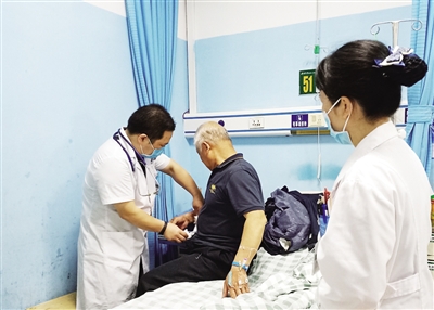 袁武仲主任和戴双媛护士长对术后患者进行查房。
