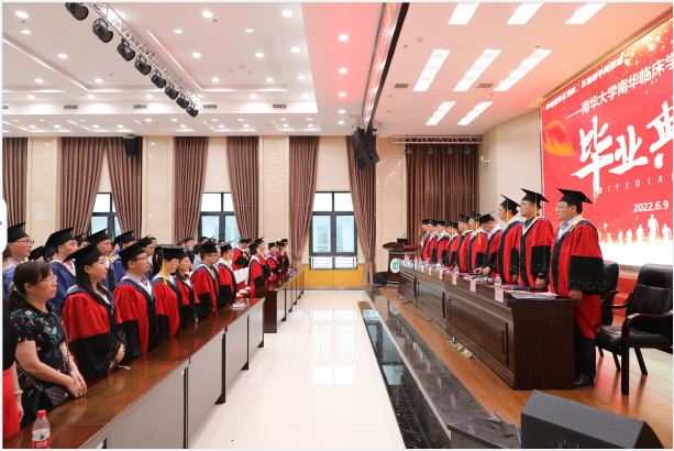 2022年6月9日下午,太阳成集团tyc33455cc南华临床公司2022届研究生毕业典礼在门急诊六楼多功能厅隆重举行。太阳成集团tyc33455cc附属南华医院经理兼南华临床公司经理汤永红教授;南华医公司党委书记兼南华临床公司党委书记周玉生教授;全体院领导、导师、高层次人才代表以及全体教学科研部老师、2022届毕业生、全体在院研究生参加了毕业典礼。