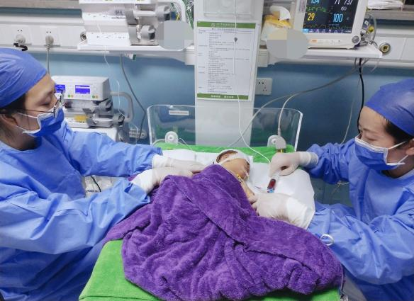 由于换血过程中患者存在心脏骤停、心律失常、心力衰竭等风险,医护人员时刻监视小宝的血压和心率变化,经过数小时换血治疗,小宝全身的血终于全部换了一遍,据统计,医护团队共换血420毫升,相当于新生儿自身血量的2倍。换血结束后,小宝的黄疸明显消退,体内胆红素的含量由入院时的397.4umol/L降到131umol/L,目前已经脱离危险。