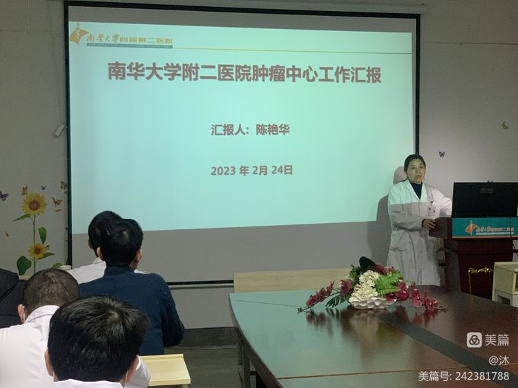 会议开始,肿瘤中心主任陈艳华对于大家的到来表示热烈的欢迎。陈艳华主任汇报了肿瘤中心的工作,介绍了肿瘤中心是由原肿瘤血液内科、肿瘤放疗科合并整合而成,并融合医技科、临床药学科等学科,形成多学科合作模式。为了学科更好的发展,肿瘤中心成立了肿瘤亚专业,肿瘤中心分为两个病区,肿瘤一区负责胸部肿瘤、泌尿生殖与妇科肿瘤、血液疾病;肿瘤二区负责头颈部肿瘤、乳腺肿瘤、腹部肿瘤。目前肿瘤中心集放疗与化疗于一体,为患者提供科学合理、规范、全面综合的治疗,实现肿瘤治疗的高效性。