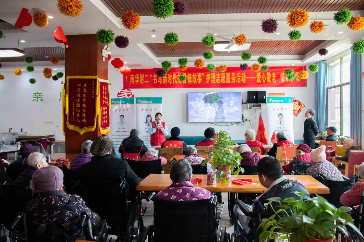 “生活中有什么不舒服的?您别紧张,我们来帮您看看……”义诊现场,养老院工作人员提前将老人们有序地安排在义诊区域,医护人员详细询问每一位老人的身体健康情况,耐心地为老人们进行听诊、量血压、测血糖、测肺功能,为老人们答疑解惑,从慢性病管理、合理用药、营养康复等多方面给予科学指导和建议,悉心叮嘱老年常见疾病的注意事项。活动中,南华附二医院专业护理人员在现场举办了疾病健康教育科普讲座,对有褥疮等特殊需要的老人进行了网约护士“一对一”护理服务,并发放了健康科普宣传手册。同时,通过讲座进一步培养了养老院护理人员的护理能力,更好地为老人的健康保驾护航。