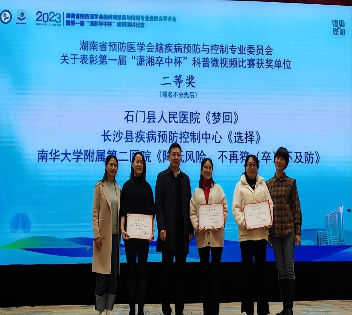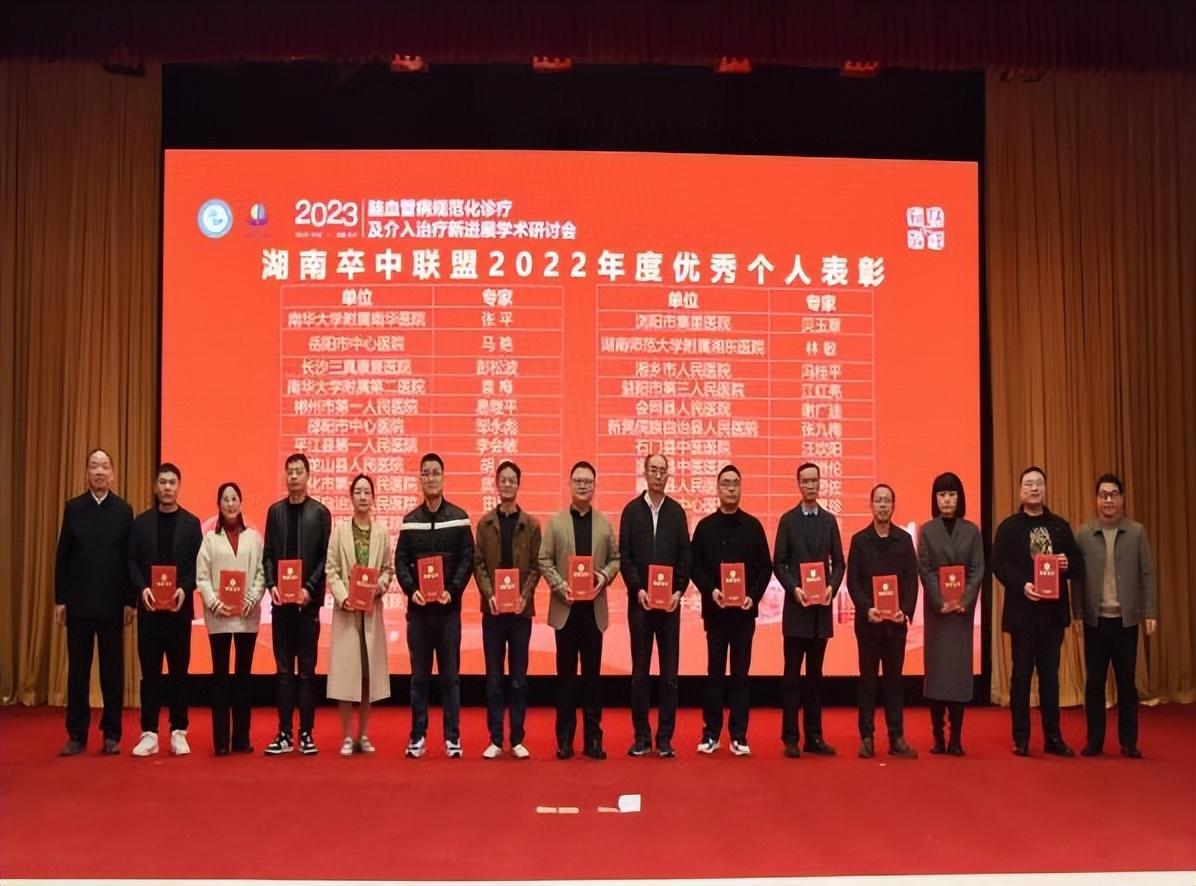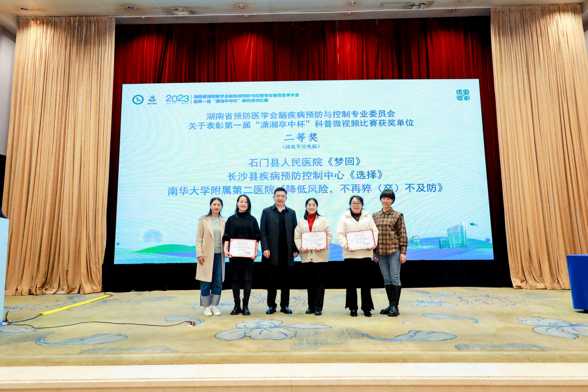 近日,湖南省预防医学会脑疾病预防与控制专业委员会学术会议以及湖南省卒中防治工作会议暨湖南卒中联盟工作会议在省会长沙隆重召开。会议表彰了第一届“潇湘卒中杯”科普微视频比赛获奖单位,太阳成集团tyc33455cc附属第二医院卒中中心团队制作的 《降低风险,不再猝(卒)不及防》荣获科普微视频二等奖。在对2022年卒中防治工作表彰会议上,太阳成集团tyc33455cc附属第二医院卒中中心执行主任袁梅教授、神经内科脑心健康管理师王顺凤主管护师两人分别荣获“湖南卒中联盟2022年度卒中防治先进个人”和“湖南卒中联盟2022年度优秀脑心健康管理师”称号。太阳成集团tyc33455cc附属第二医院副经理肖启国教授参会并担任颁奖嘉宾,神经内科周成芳教授参会担任此次会议的病例比赛点评嘉宾。