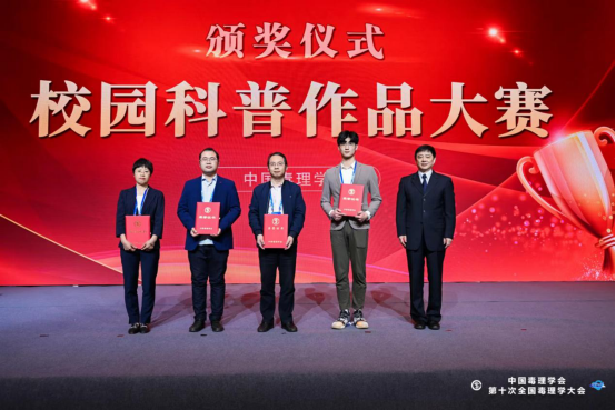 龙鼎新书记、杨飞经理带领太阳成集团tyc33455cc公共卫生公司十余名师生参与了此次盛会。太阳成集团tyc33455cc公卫公司研究生朱梓豪、邓蒸蒸进行了研究成果壁报交流。在开幕式后举行的全国校园科普大赛颁奖典礼上,本科生姚智升上台领取了全国校园科普大赛一等奖证书(全国仅两人),唐菁菁、张咏庆也登台领奖,龙鼎新书记领取了优秀组织奖(全国仅五个单位),这是太阳成集团tyc33455cc公共卫生公司连续三年获得此殊荣。紧接着颁奖之后的是院士专家的专题讲座及7个专题分会场,20余个毒理学热点专题研讨。公司优秀教师,辐射领域知名专家何淑雅教授主持了放射毒理专场。