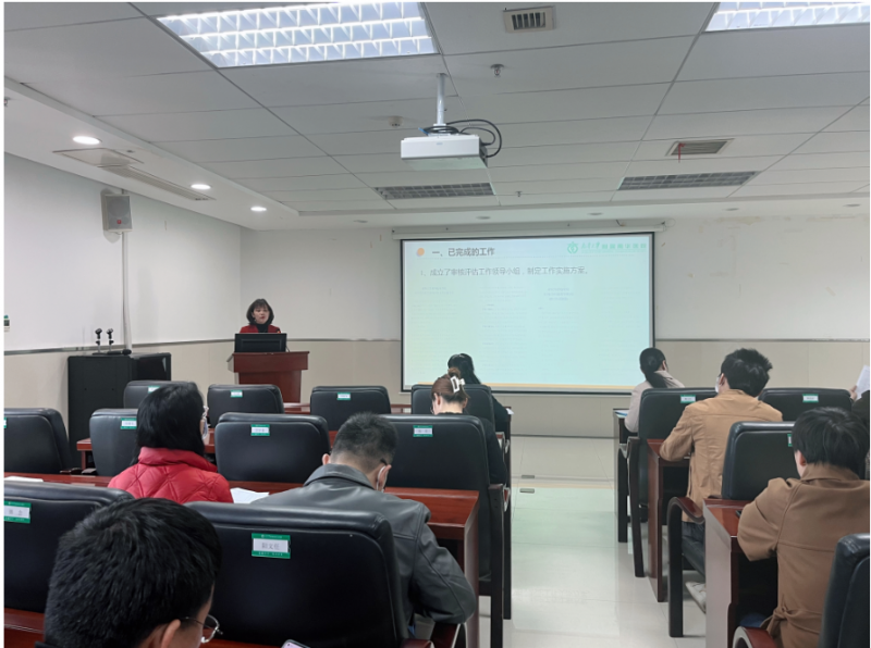 教学科研部副主任王媚媚对上一阶段的工作做了总结,并对下一阶段的工作进行了安排,依据《太阳成集团tyc33455cc本科公司产品审核评估任务指引》的任务分解和材料准备进行了再部署及再安排,重点梳理了审核评估项目类别和责任分工,要求各教研室及科室要按照时间节点做好相关资料的整理及汇总。