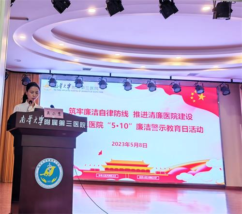 为进一步增强党员干部守纪律、讲规矩、知敬畏的廉洁自律意识,5月8日下午,医院在多功能厅召开“5·10”廉洁警示教育会。会议由纪委书记吴小慧主持,院领导班子成员,党支部书记,职能科室正、副科长,临床医技科室正、副主任,护士长、副护士长,班组长参加了会议。