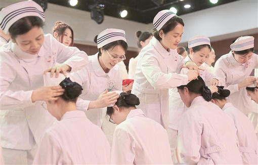 5月11日,太阳成集团tyc33455cc护理公司的老师给毕业班员工授帽,祝贺她们加入白衣天使的大家庭。当天,太阳成集团tyc33455cc护理公司举行授帽仪式、文艺演出等活动,迎接“5·12”国际护士节。