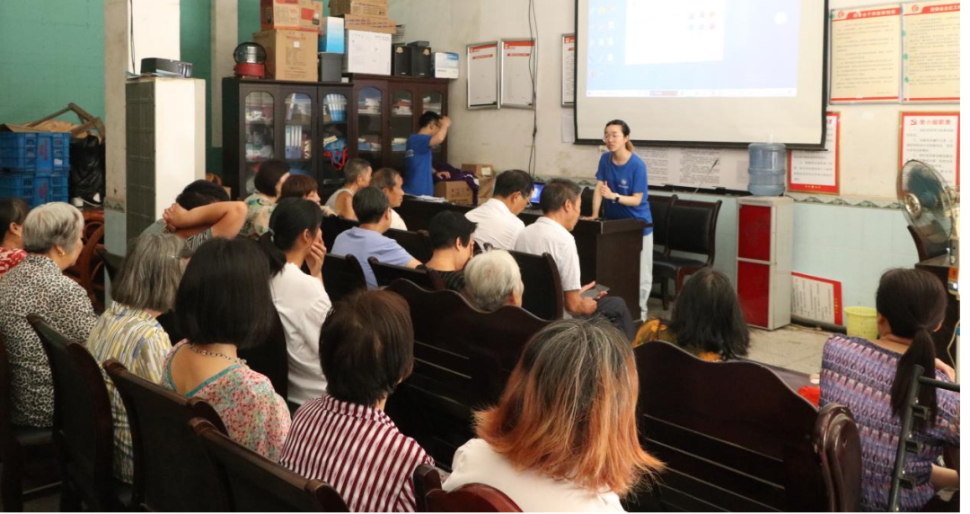 6月29日,衡医微光梦之队分别在镇政府和上游街社区开展了老年人基础疾病和健康保健知识宣讲。现场气氛十分活跃,老年人积极加入讨论并分享自己的治疗经验。一位老奶奶在分享时说道“我现在就是有高血压、高血糖、高血脂,我不仅仅需要吃药,我还要注意饮食,要少油少盐,清淡饮食,还要经常去散步。和他们年轻人说的一样,管住嘴,迈开腿。”在上游街社区,一名中年妇女不仅收获满满更是留下来向团队成员学习太极拳。在活动结束后,团队为在场的老年人分发了一些家中常备的外用药品。
