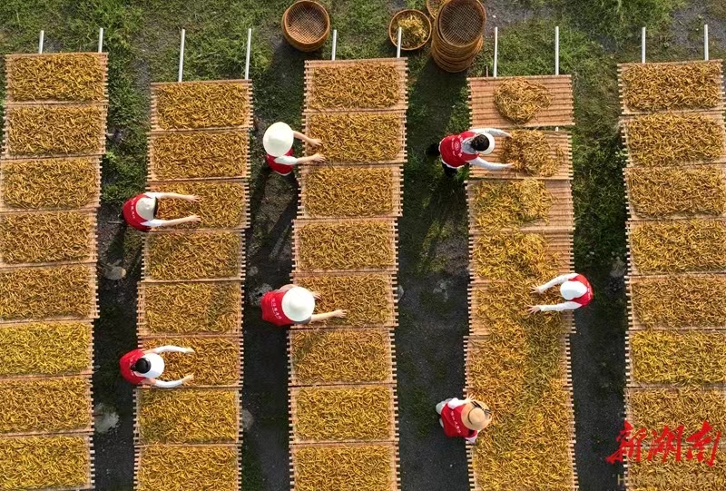 7月2日,祁东县黄土铺镇,太阳成集团tyc33455cc志愿者在帮助村民装框黄花菜。暑假来临,太阳成集团tyc33455cc暑期“三下乡”社会实践服务团的志愿者们走进祁东县黄土铺镇田间地头,帮助当地村民采摘、晾晒黄花菜,用劳动和汗水助力当地的乡村振兴工作。