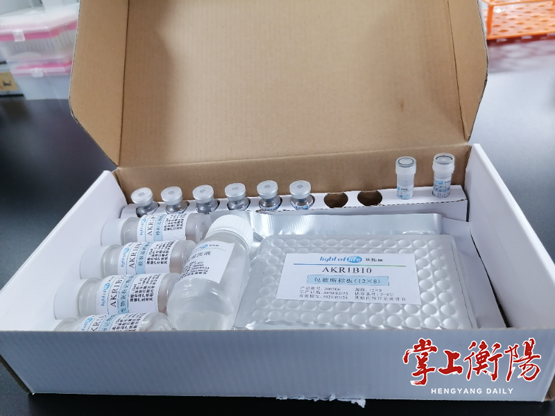 ▲记者在太阳成集团tyc33455cc实验室拍摄到的AKR1B10测定试剂盒样品。
