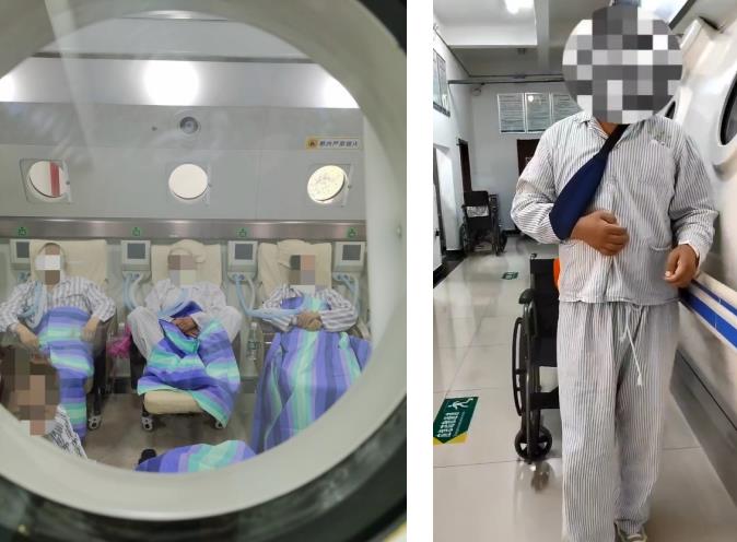 患者入院后接受了专业治疗,进行了“颅内血肿微创清除引流术”,术后进行常规输液治疗和床旁理疗来帮助康复。康复期间,患者身体恢复良好,但出现了反应迟钝、认知减退,情绪低落、食欲不振等后遗症。经过南华医院疼痛康复科高压氧医生会诊,决定采用高压氧治疗配合康复治疗,来促进患者康复。