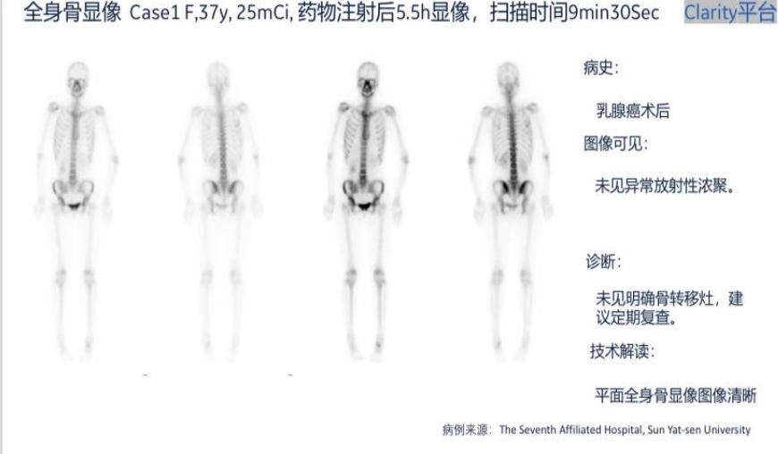 与老款SPECT相比,光子发射断层及X射线计算机体层摄影成像系统 (SPECT/CT)扫描时间由原来20多分钟缩短到现在9分钟。