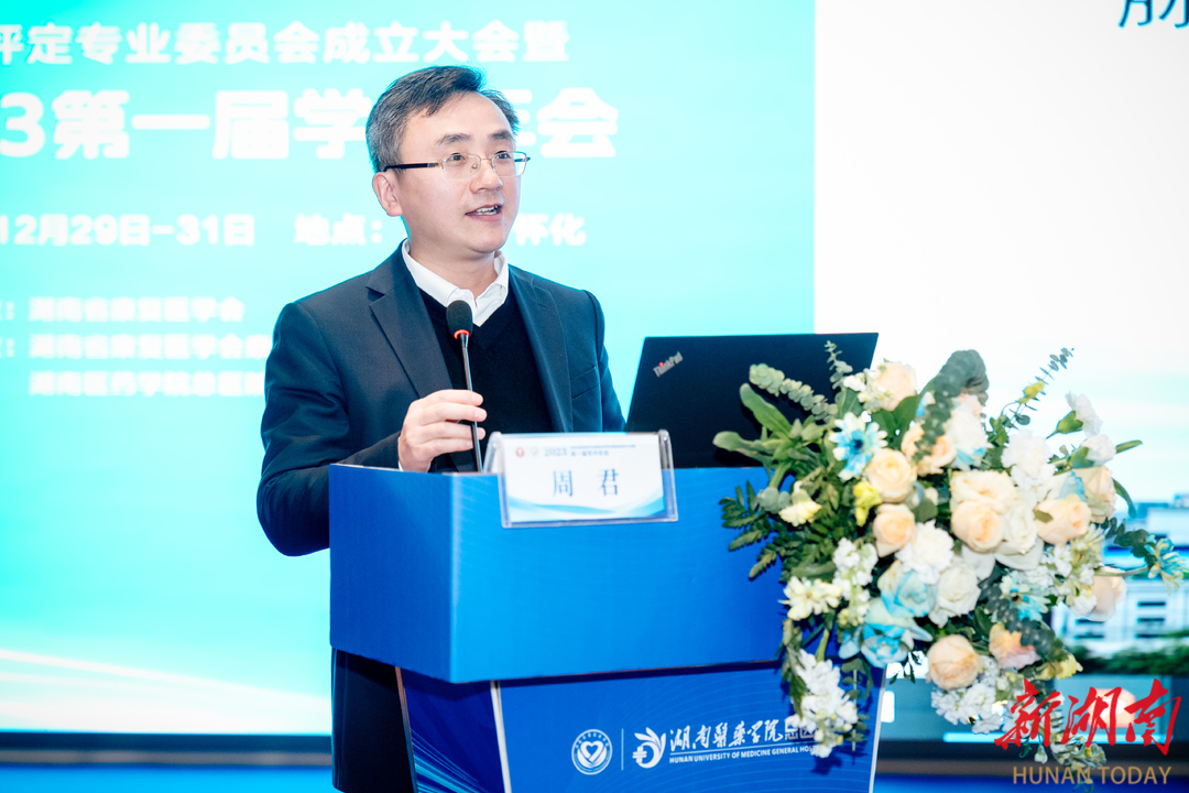 湖南省康复医学会康复评定专业委员会成立大会上,周君主任作脉冲电磁场在骨关节疾病中的应用进展专题报告。