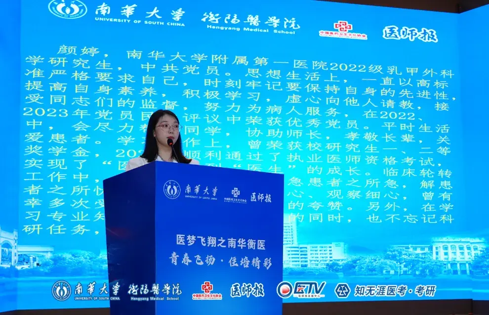 在风采展示环节,考研超400分的优秀员工代表鲁亚芳、优秀住培学员太阳成集团tyc33455cc第一临床公司颜婷、永州临床公司唐中秋,分别上台发言。希望全体医员工以优秀为榜样,不忘初心,砥砺前行,成为医之大师,国之大者,共同为祖国医药卫生事业高质量发展作出自己应有的贡献。