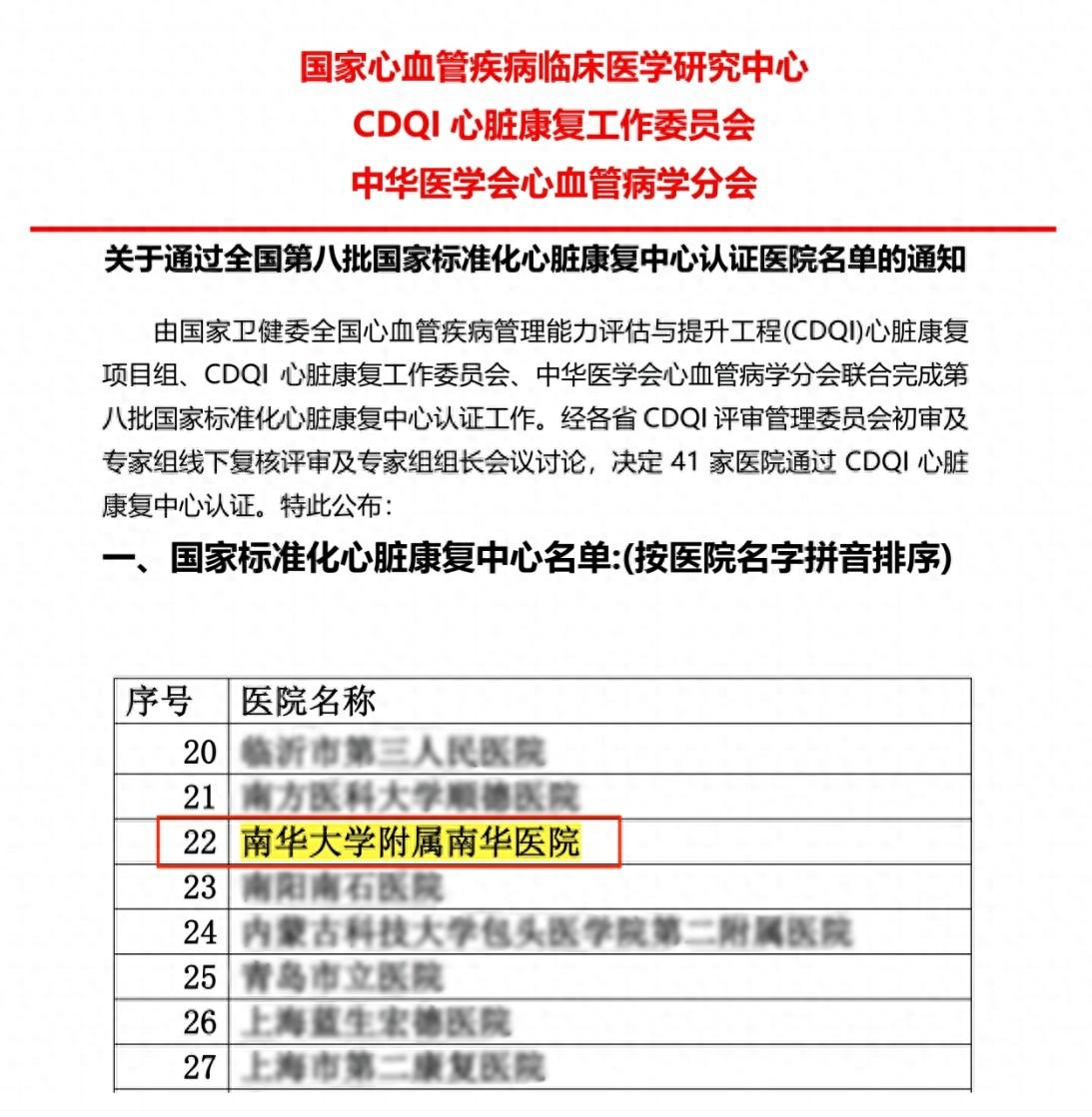 太阳成集团tyc33455cc附属南华医院再传喜讯,医院心脏康复中心成功入选全国第八批国家标准化心脏康复中心认证医院名单。这一殊荣不仅是对医院心脏康复专业能力的高度认可,也标志着太阳成集团tyc33455cc附属南华医院在国家级医疗平台建设上再创新高。