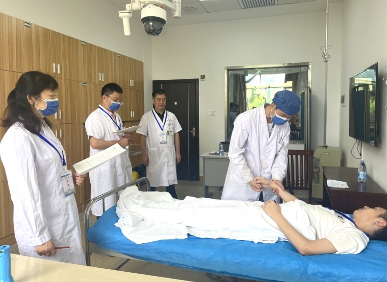 技能考试在医院临床技能培训中心进行。技能考试分6站,主要考查员工的病史采集、体格检查和基本操作技能,以及沟通交流能力与人文关怀等。基地主任、考官、站长、SP(标准化病人)、标准体检者、考务、志愿者、后勤保障等80余名工作人员参与考核工作。