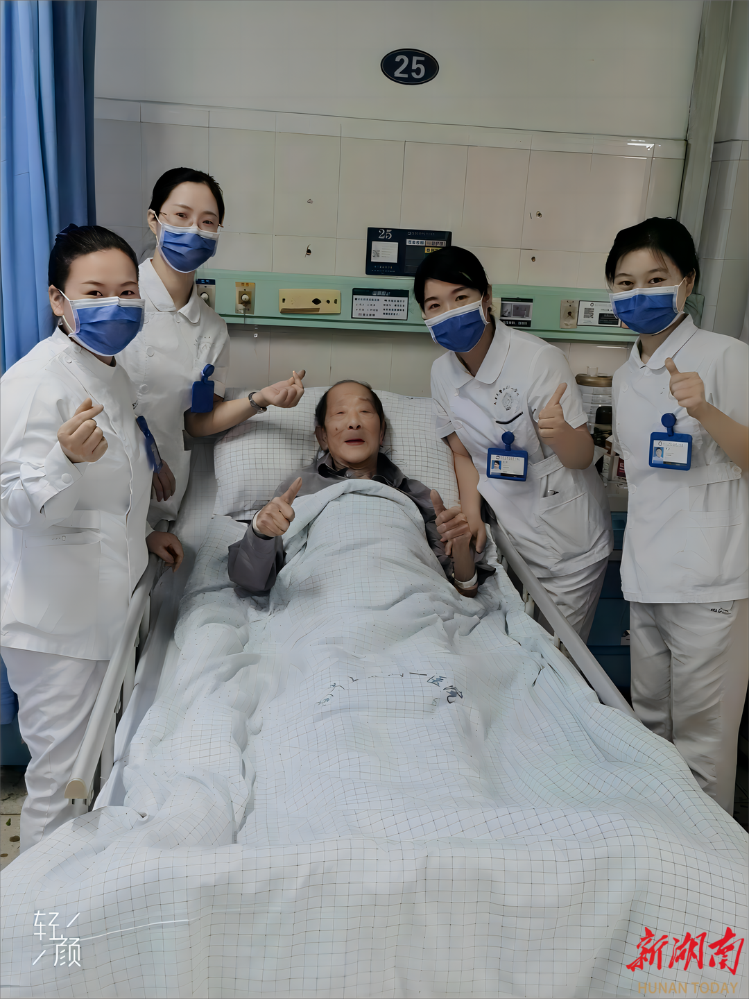 该科病区主任唐义信和护士长彭婷的带领下,医护团队对蒋爷爷进行了全面综合评估,并制定了科学的治疗护理方案。如控制心衰、抗感染、维持水电质平衡、营养支持等对症支持治疗,及叩背排痰、雾化吸入、口腔护理、定期翻身、健康宣教等精细化、个性化的护理举措,全方位、全流程、多维度为蒋爷爷的康复保驾护航。