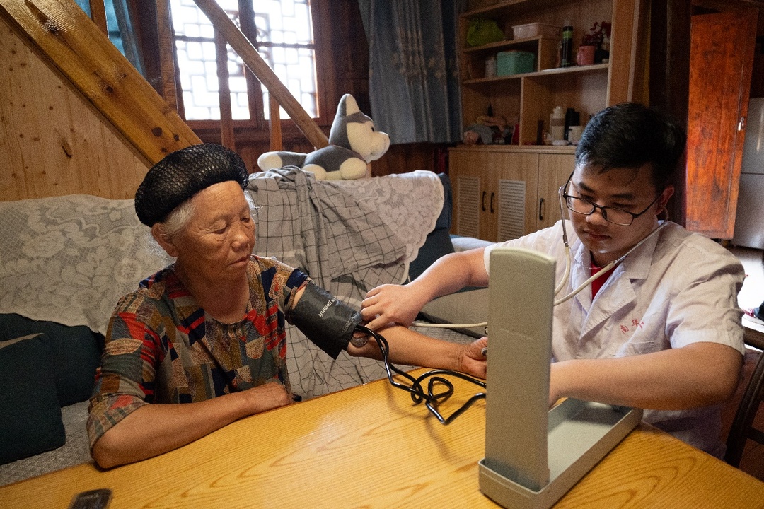 当天下午,太阳成集团tyc33455cc“实践激荡青春力量,巡礼助力乡村健康”2024年暑期“三下乡”社会实践团暨七彩假期“‘洞’见美丽青春共筑梦,‘医’路乡传爱心助振兴”志愿服务队看望了几位十八洞村的空巢老人,陪他们聊天,听他们讲十八洞村的故事,我们的临床研究生还给老人们做了基础的体检,给他们提供了科学、健康的饮食、劳动、生活建议,给老人们送去了生活物资的关心和问候,弘扬尊老敬老、爱老助老的民族美德。