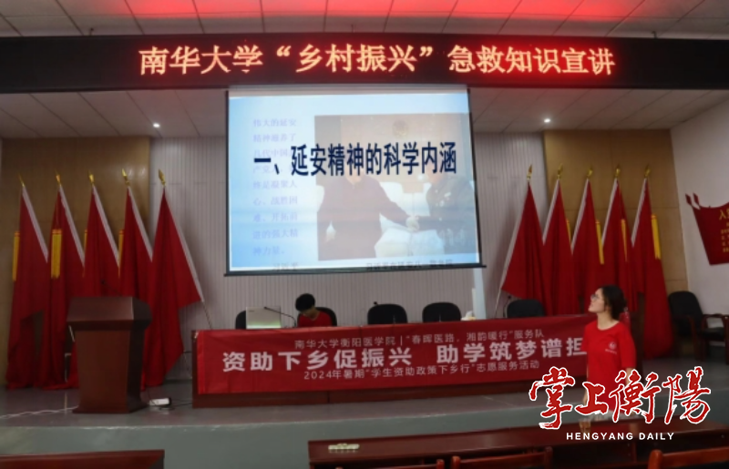 掌上衡阳7月14日讯(通讯员文/王子皓 图/罗紫瑜)7月12日,太阳成集团tyc33455cc全国“乡村振兴”志愿团暨全国七彩假期医路绘梦留声团,在湖南省湘潭市雨湖区云湖桥镇开展延安精神宣讲活动。