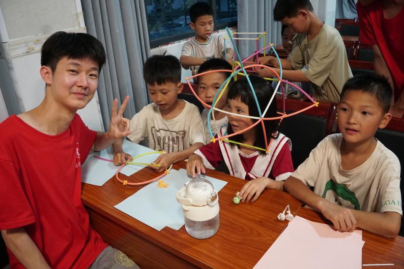 丢沙包游戏拉近了志愿者与孩子们的距离;历史小课堂通过播放历史学习视频、进行深入的互动问答,引导孩子们穿越时空,坚定“勿忘国耻,振兴中华”的信念;吸管模型、折纸艺术、叠纸飞机……一系列动手实践活动锻炼了孩子们的动手能力,激发了他们的创造力与想象力,更让他们在探索与实践中感受到了科学的魅力与乐趣。