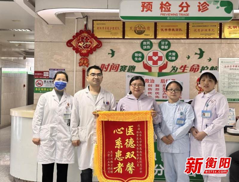 返京后,刘女士严格遵循医嘱治疗,病情迅速好转。不久,她的爱人也出现发热、咳嗽等症状。刘女士牢记杨军副主任医师的提醒,劝说丈夫及时就医,丈夫被确诊为“鹦鹉热衣原体肺炎”。由于早就医、早确诊、早治疗,夫妻二人最终双双康复。为表达感激之情,刘女士特意调整行程,专程从北京赶赴衡阳,亲手送上锦旗。她动情地说:“若没有南华医院前期的精准诊断,后果不堪设想。从杨医生抽丝剥茧的诊断,到护士们输液时的轻声安慰,这里的每个细节都让我感受到医者的仁心与温度。”