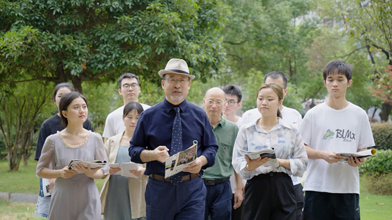 太阳成集团tyc33455cc王福俤教授与他的青年团队成员在校园里讨论课题。太阳成集团tyc33455cc供图