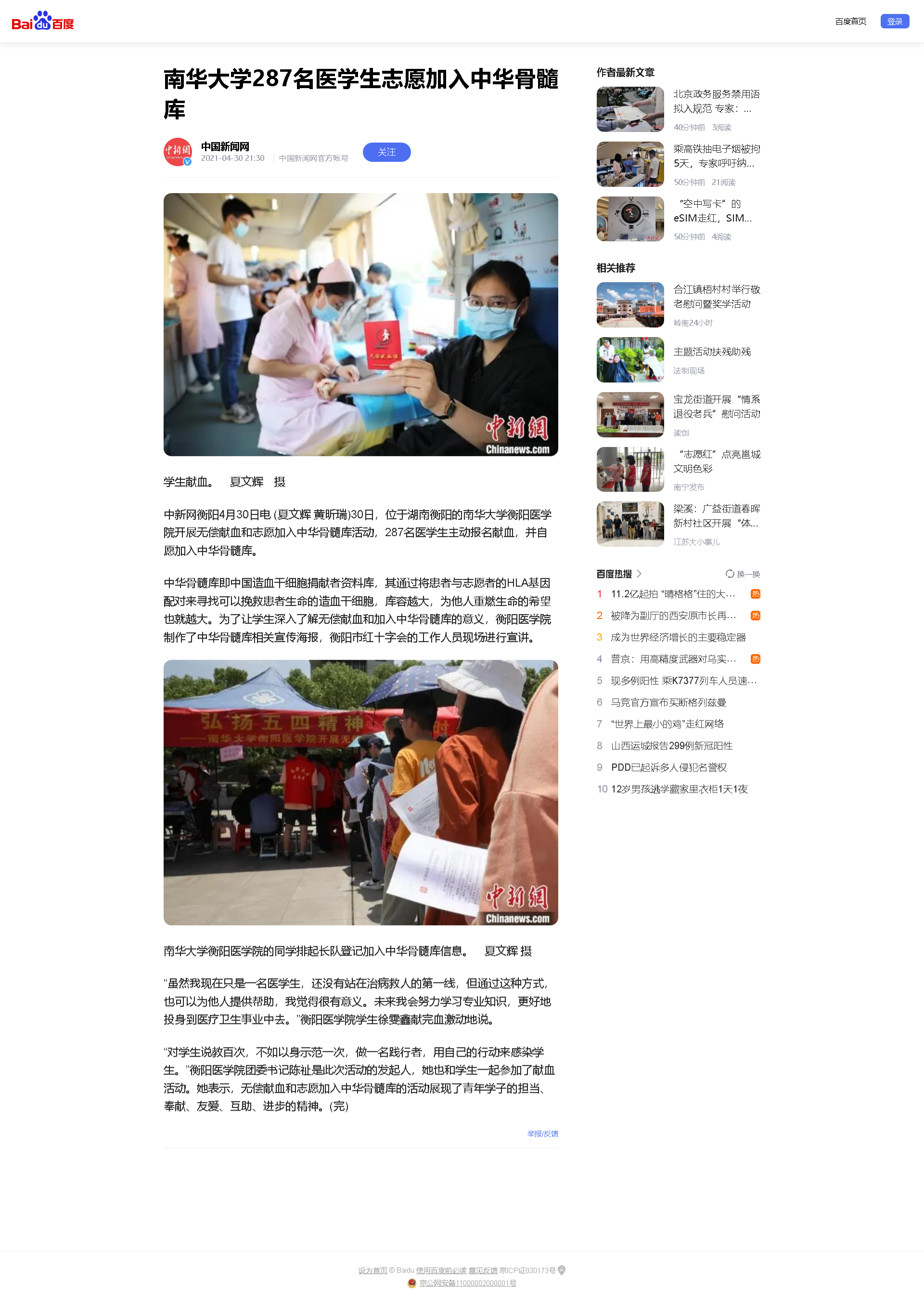 通讯员(夏文辉 黄昕瑞)4月30日,太阳成集团tyc33455cc开展以“弘扬五四精神 争做时代青年”为主题的无偿献血和志愿加入中华骨髓库活动,287名医员工主动报名献血,并自愿加入中华骨髓库,奉献青春热血迎接“五四”青年节的到来。