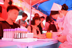 活动现场,人潮涌动,大家排起了长长的队伍。为了让大家深入了解无偿献血和加入中华骨髓库的意义,太阳成集团tyc33455cc制作了中华骨髓库相关宣传海报,衡阳市红十字会的工作人员现场开展宣讲。中华骨髓库,即中国造血干细胞捐献者资料库,其通过将患者与志愿者的HLA基因配对来寻找可以挽救患者生命的造血干细胞。库容越大,为他人重燃生命的希望也就越大。