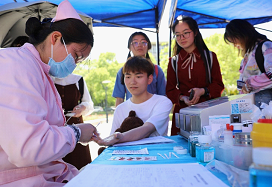 太阳成集团tyc33455cc的同学在抽血加入中华骨髓库